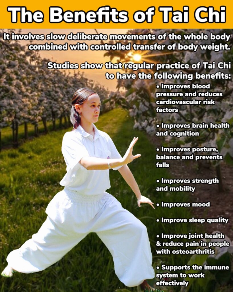 TaiChi has a positive effect on the bodily organs, helps prevention of illnesses, and has meditative qualities.